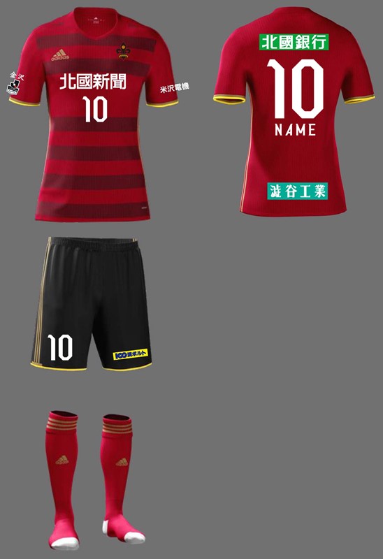 ホーム(1st)は伝統である赤を基調に、濃淡のボーダー柄を採用。差し色の黄色がツエーゲンらしい。