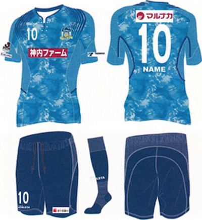讃岐の2017シーズン新ユニフォーム、ホーム(1st)はカマタマーレのサックスカラーを基調に、多色のサックスをミックスしたデザイン(※原文ママ)。