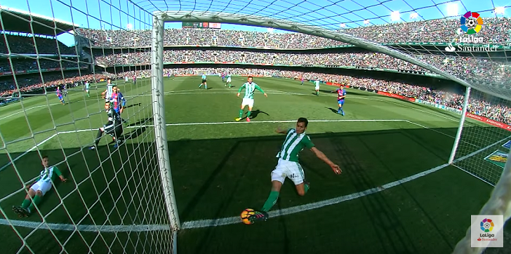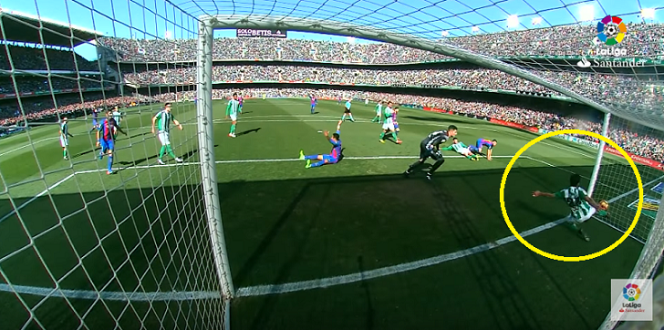 ベティスが1-0とリードして迎えた後半、アレイシ・ビダルのクロスボールをベティスの選手がクリアミス。これがゴールラインを割ったものの、ゴール判定とならなかったのだ。
