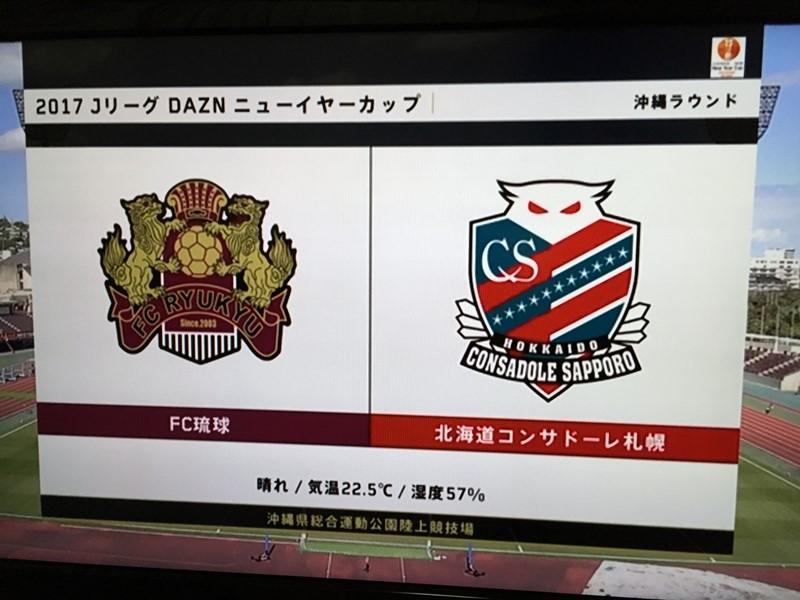 「2017JリーグDAZNニューイヤーカップ」の沖縄ラウンドは、地元のFC琉球(J3)、ジェフユナイテッド千葉(J2)、そして北海道コンサドーレ札幌(J1)が出場。