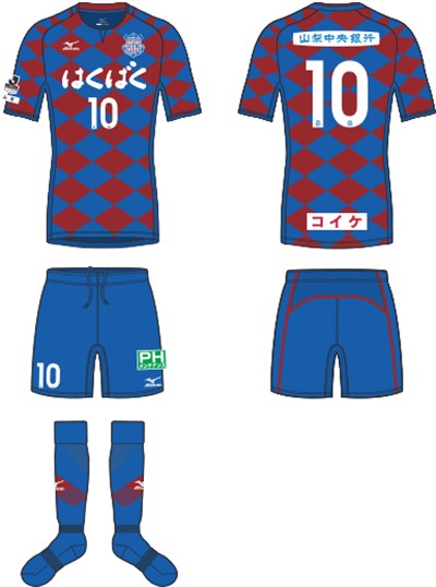 甲府の2017シーズン新ユニフォームは、「甲斐の虎」として名高い戦国武将である武田信玄の家紋、武田菱をモチーフとして採用したデザイン。戦国最強を誇った武田信玄のスピリットを継承しつつ、組織的かつ戦略的に勝利を積み重ねるクラブの「迫力」や「スピード感」をテーマにしている。