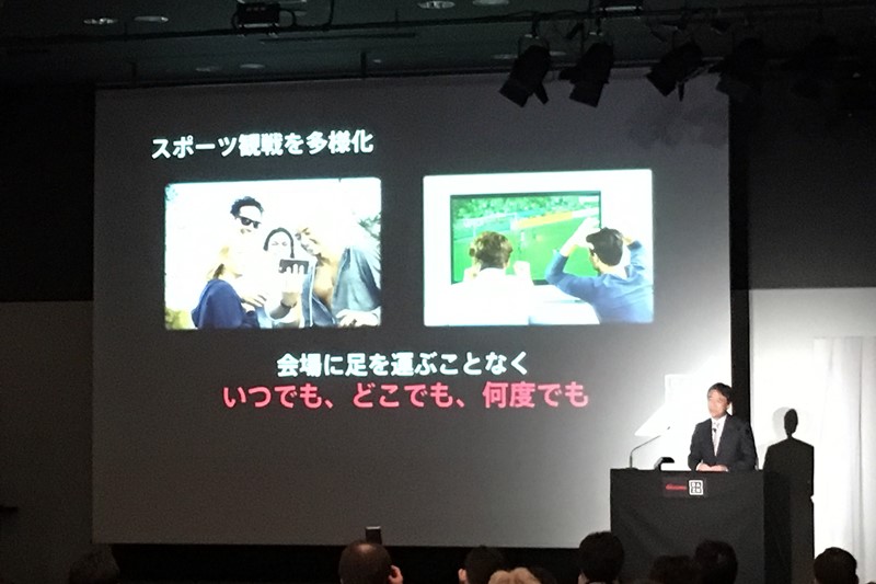 「2020年、そしてその先へ向けて、ドコモの技術を駆使してスポーツを盛り上げていきたい」と新サービスについて語ったNTTドコモの吉澤和弘代表取締役社長。“いつでも、どこでも、何度でも”は『DAZN for docomo』のコンセプトを分かりやすく表しているといえるだろう。