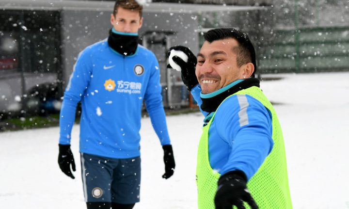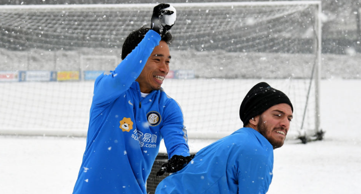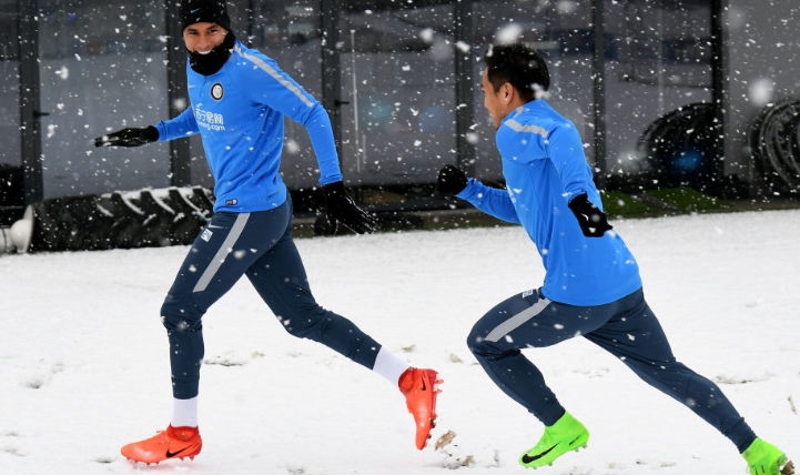 週末にホームでのエンポリ戦を控えているインテル。この日はアッピアーノ・ジェンティーレの練習場にかなりの雪が積もっていたようだ。