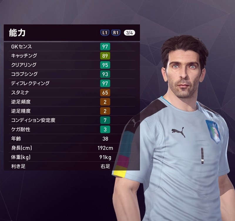 今年1月28日、39歳の誕生日を迎えたブッフォン。20年に渡って第一線で活躍してきた彼だが、そのプレーはまだまだ健在だ。誰よりも高いGKセンス97は彼だからこそである。