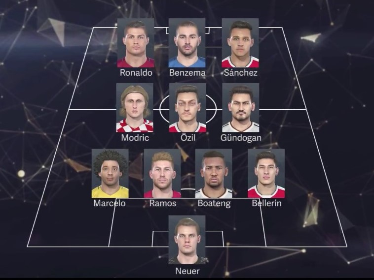 中盤は自身のサポート役?にモドリッチ、ギュンドーアンを選出。かなり頼りになりそうな2人である。現所属のアーセナルからはベジェリン、サンチェスが入った。FWのみドイツ代表選手がいない点がちょっと興味深い。