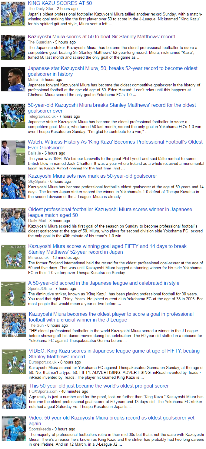その他、ウェブ上で伝えられたニュースを一覧にするとこんな感じに。