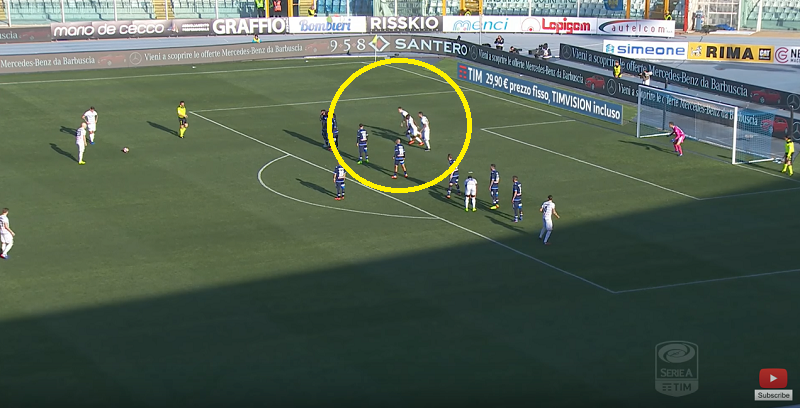 これは入念な準備が可能にしたトリックプレーと言えるだろう。ペスカーラの選手たちは完全に虚を突かれた格好となり、このプレーに対応することができなかった。