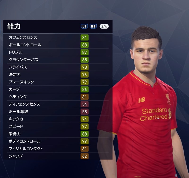最後に恒例となっている編集部オススメの選手。ドリブル89のヤニック・フェレイラ・カラスコ(アトレティコ・マドリー)と迷ったが、今回はコウチーニョを選択した。