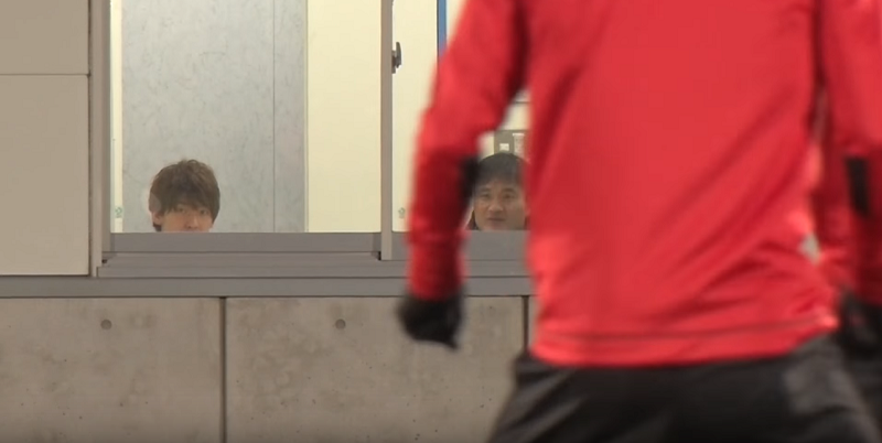 負傷のためチームから離脱した今野泰幸と大迫勇也も控室からその様子を見守っていた。