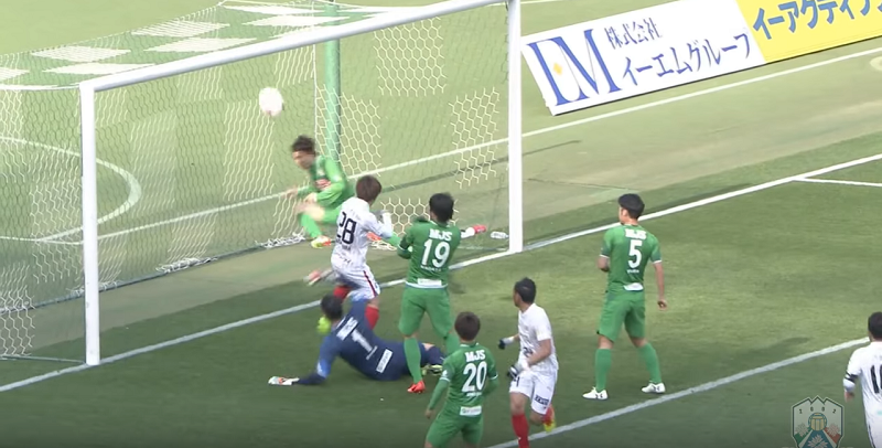 GK柴崎貴広によって防がれるも難波宏明が詰めたことでゴールを割ったかに思われたのだが…ここに飛び込んだのが安在和樹!