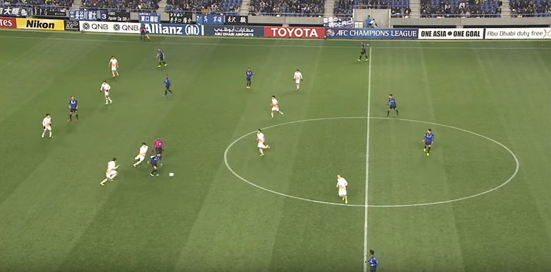 前から来る選手にはほとんどボールを失わない遠藤だが、後ろからの対応は非常に不得意としている(柏戦では前を向いた状態からボールロストし失点しているが)。こうした対策が、ACLではあからさまに採用されていると思えてならない。