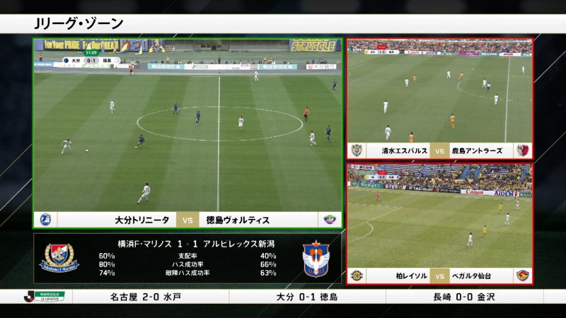 一つはJ1・J2・J3のリーグ戦の放映において、複数の試合を同時に、かつ注目シーンだけを集めてライブ放映する番組コンテンツ「Jリーグ・ゾーン」だ。