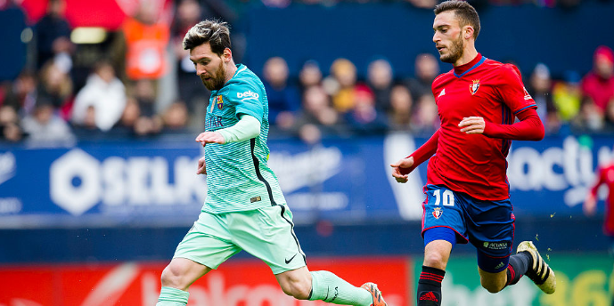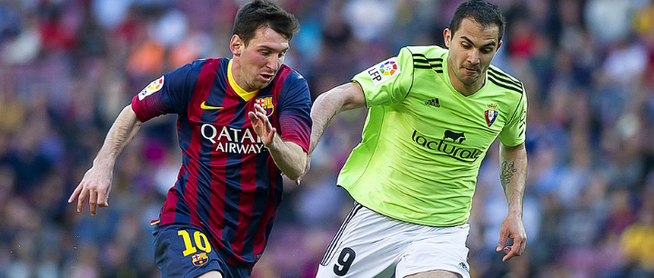 今季1部に再昇格したオサスナにとって、カンプ・ノウでのバルサ戦は2014年以来のこと。当時は蛍光っぽい緑のユニフォームを着用していた。