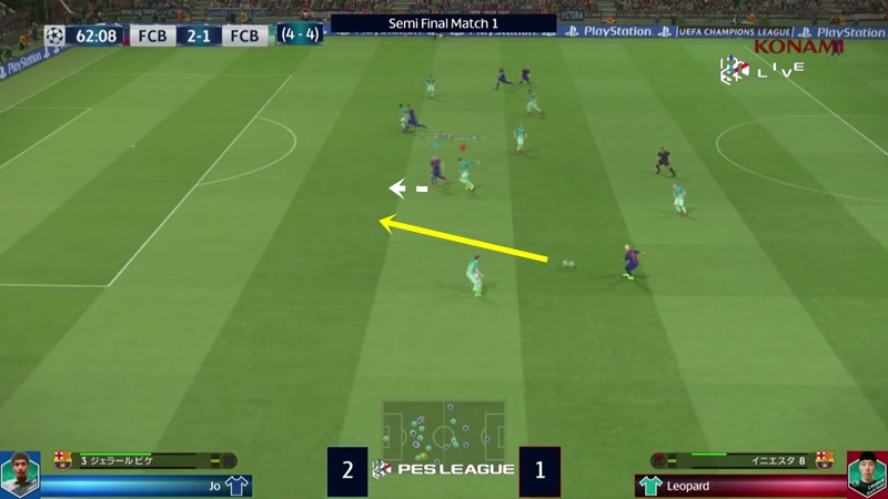 2ndレグも終盤ということで、相手プレイヤーのクセが分かっている時間帯。やや緩さのあるパスを鋭い出足でカットした。