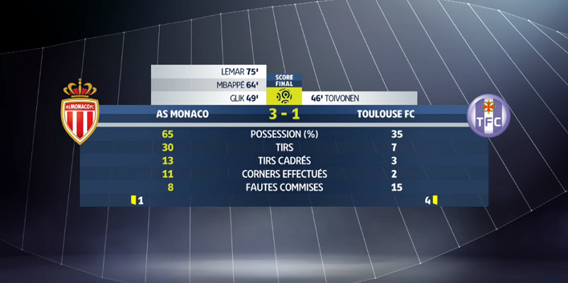ポゼッション65%はバルセロナやバイエルン級であり、シュート数が「30」ということで、モナコはこの試合で3分に1本はシュートを打っていたという計算になる。これは90分の試合ではほとんど見ない数字…(トゥールーズは最後まで11人だった)。
