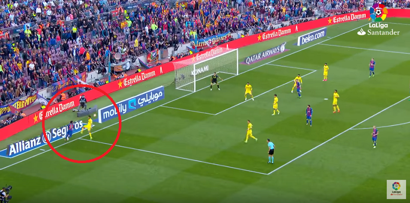 結局ネイマールのクロスはゴールに繋がらなかったものの、トラップしたルイス・スアレスが相手のハンドを誘いバルセロナにPKの判定。このチャンスをリオネル・メッシが成功させ、バルセロナが試合を決定付ける4点目をゲットした。