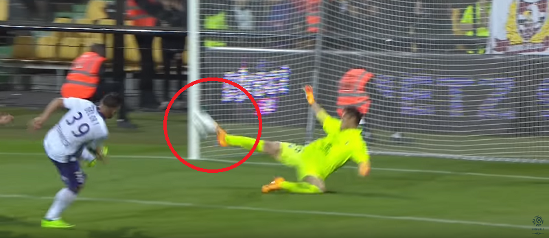 驚くべきはセーブしていた部位で、なんと右足のつま先にボールを当てていた!これはスゴい…。