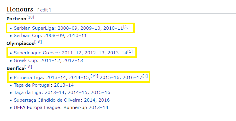 2度の移籍を経験をし、それぞれオリンピアコス、ベンフィカへとステップアップを果たしているのだが、それでも9年連続でリーグ優勝しているのだ。