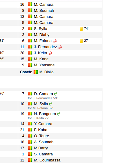 ちなみに上からムサ・キャマラ、モハメド・アリ・キャマラ、モハメド・マディ・キャマラ、ダウダ・キャマラ、ヤムサ・キャマラ、セクバ・キャマラである。
