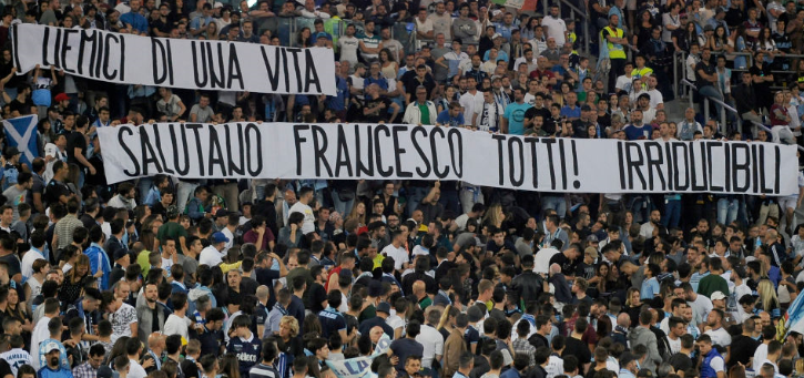 今季限りで引退、もしくはローマから退団するといわれているトッティ。宿敵であるラツィオのファンからも敬意が表されていたようだ。