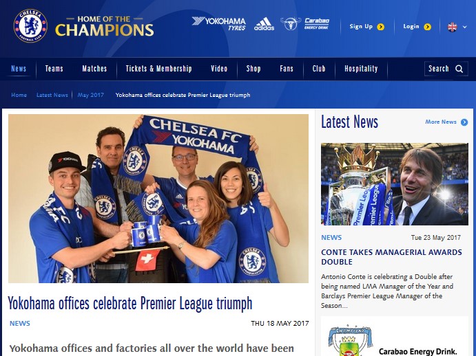 2017年5月12日(イギリス現地時間)、ヨコハマがオフィシャルシャツパートナーを務める Chelsea Football Club がプレミアリーグ優勝を決めました\(^o^)/