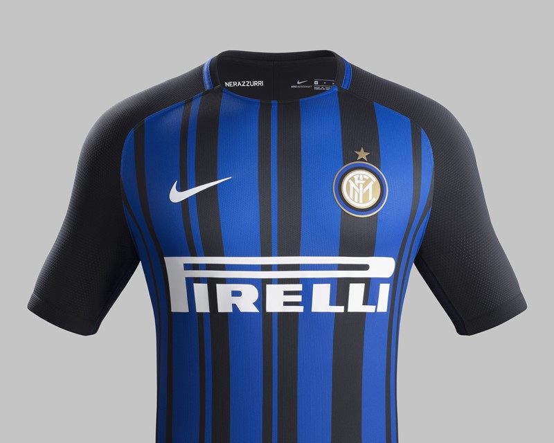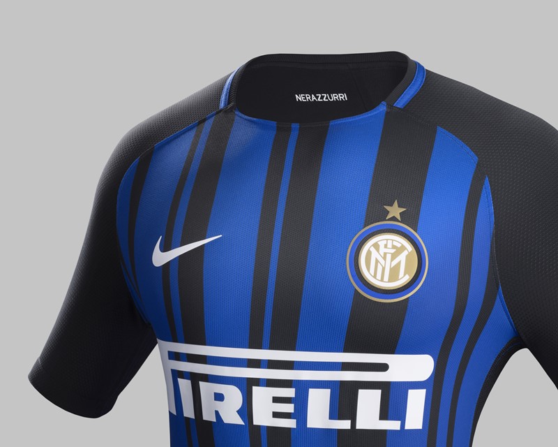 インテルの2017-18ホームユニフォームは、クラブカラーでチームの愛称でもある“ネッラズーリ”(黒と青)を用いたモダンなストライプが特徴のデザイン。