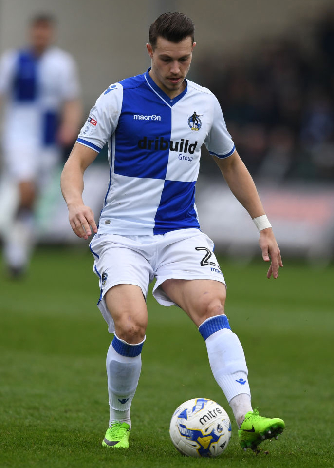 イングランドのクラブ、ブリストル・ローヴァーズの2016-17シーズンモデル。青と白の4分割デザインはこのクラブの伝統的なデザインだ。写真はダニエル・リードビター。このシーズンはリーグ1(英3部)を10位で終えている。