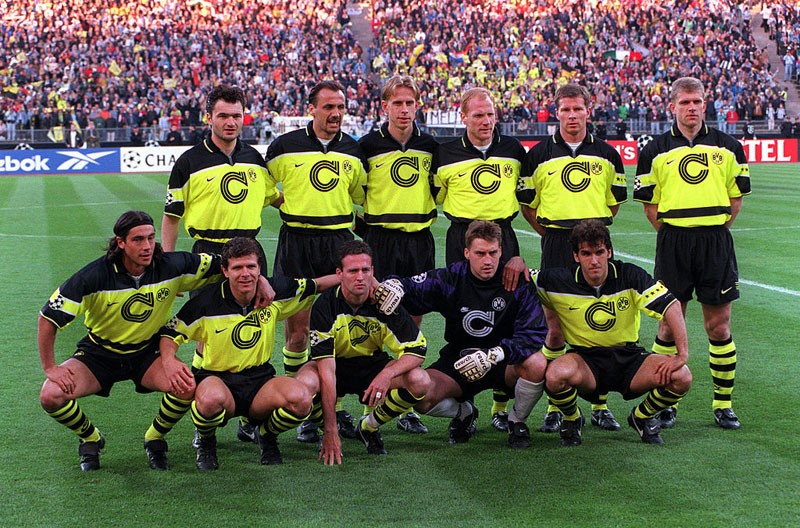ドルトムントのキットメーカーはNike。発色が良いイエローは当時のドルトムントのユニフォームの特徴だった。