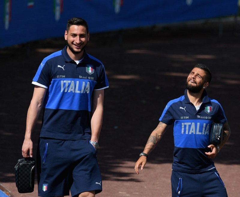 こちらは、ミランGKジャンルイージ・ドンナルンマとナポリFWロレンツオ・インシーニェが並んだ写真。