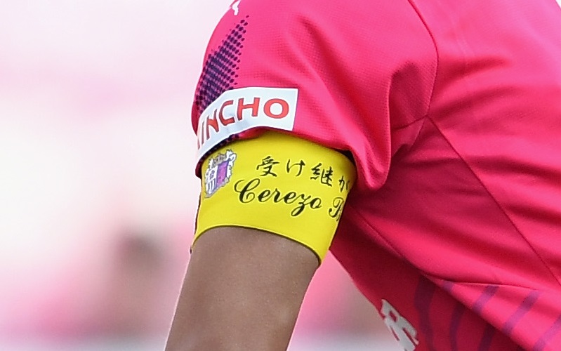 過去の写真から参照するに、どうやら柿谷のキャプテンマークには「受け継がれしCerezo Blood」という文字が書かれているよう。
