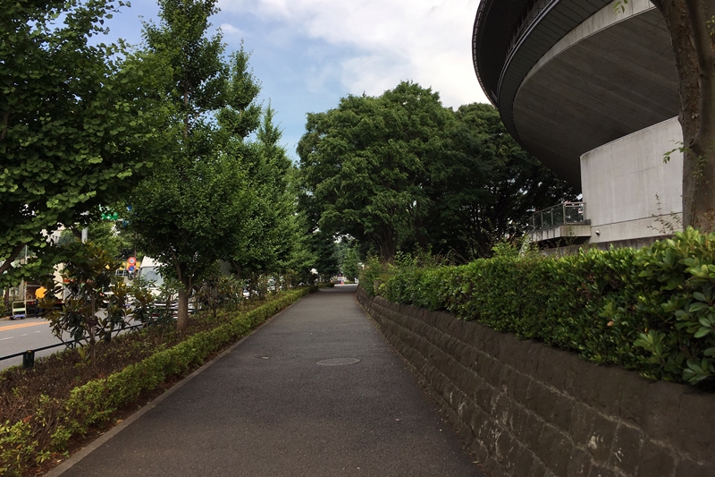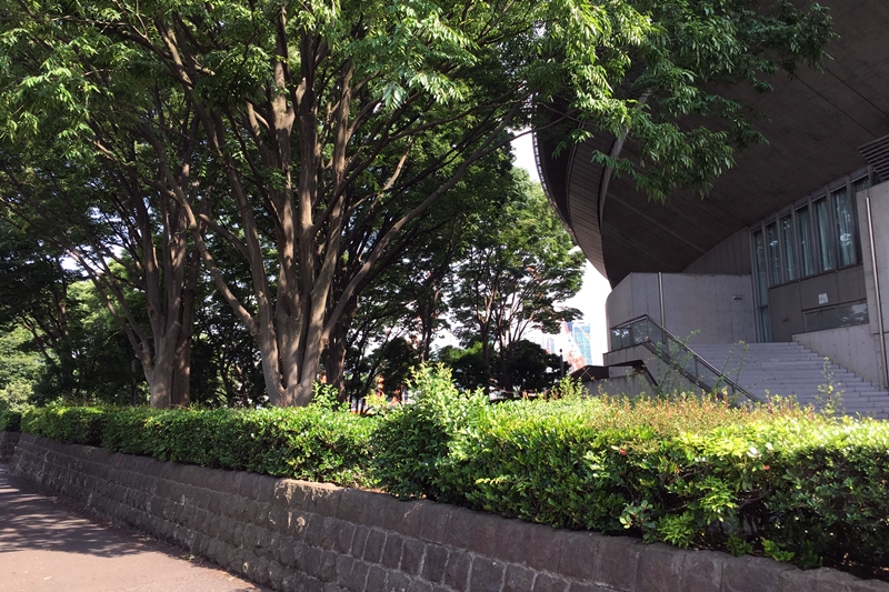 東京体育館の脇を進んでいくと、建物と緑地の間から見えてきたのは…。