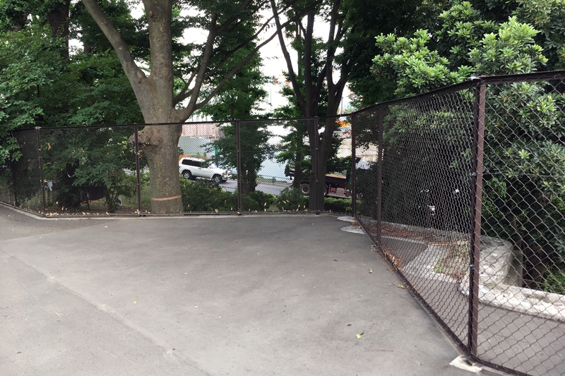 外苑橋を渡ったところにある謎の三角コーナーは健在。人通りを避けるためにこのスペースを活用した人は多いのではないだろうか。