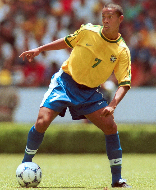 ユニフォームはNIKE製1998-99年モデル。1998フランスワールドカップで使われたものだ。当時19歳のロナウジーニョはゴールデンボール(大会MVP)と、大会6得点でゴールデンシューズ(得点王)を獲得した。