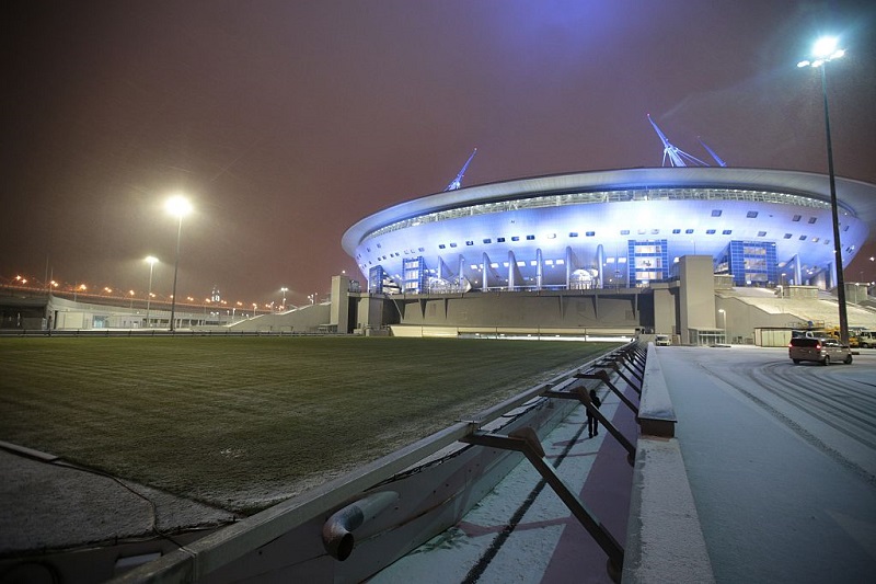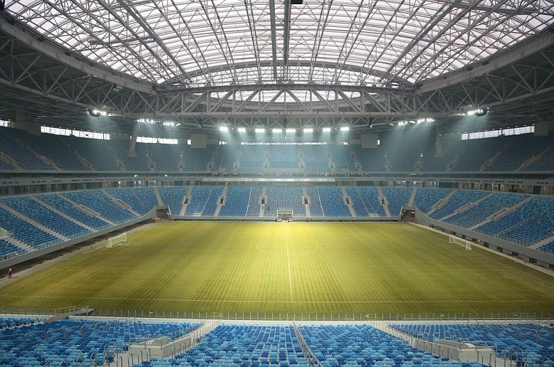 クレストフスキー・スタジアムにも、屋根から突き出た円錐のようなポールが採用されている。
