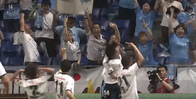 これぞスタジアム観戦の醍醐味であり、ゴール直後という最高の興奮状態の中こうした楽しみがあるのは素晴らしいことだ。