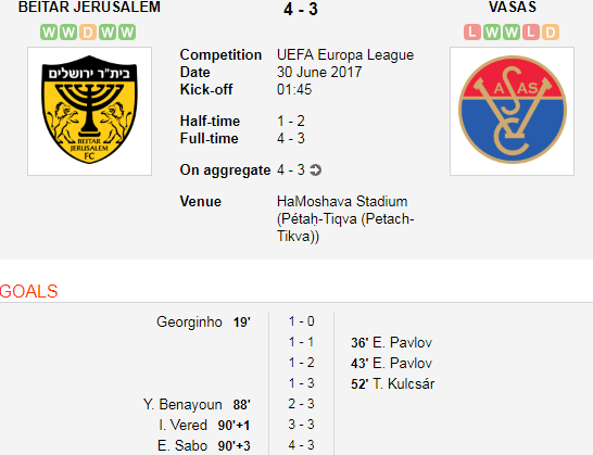 新シーズン開幕はまだなのだが、UEFAヨーロッパリーグ予選はすでに始まっており、ベイタル・エルサレムは1回戦でヴァシャシュ・ブダペシュト(ハンガリー)との対戦となった。