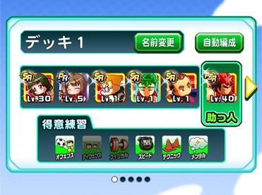 まず、これらのキャラで、デッキなるものを組みます。デッキに加えるキャラが練習パートナーとなるため、その編成によって育てる選手の方向性が大きく変わってきます。
