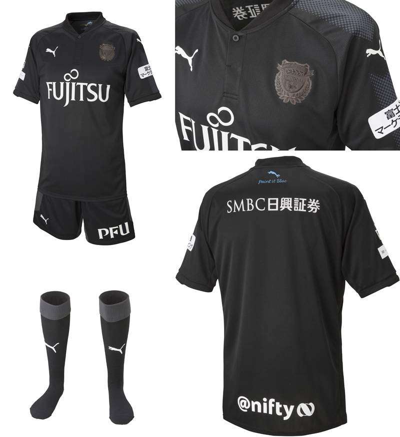 川崎フロンターレは、クラブカラーの一つである黒を全面押し出したデザイン。さらに、スポンサー企業の協力を経て、ロゴカラーをすべて白で統一している。