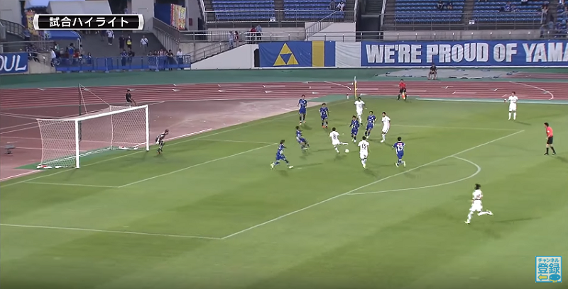 そんなこのゲームで先制点をあげたのはDF西大伍。複数の選手により生まれたのだが、少々珍しい形であった(00:11から)。