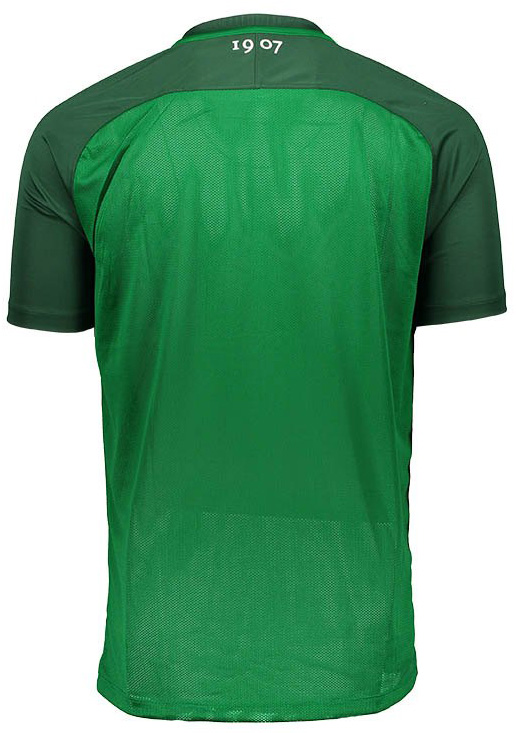 昨シーズンモデルはグリーン×ブラックだったが、新アウェイユニフォームは濃淡の異なる2色のグリーンでまとまっている。首周りは浅めのVネックを採用。