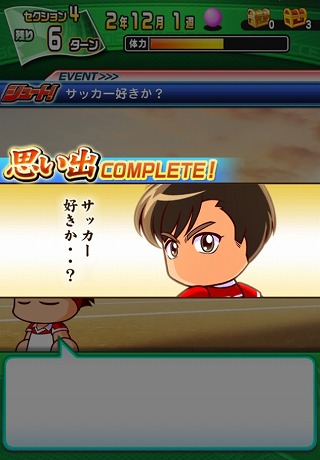 経験点がたくさんもらえる団結練習も大切に。『シュート!』キャラがなるべく多く集まっている練習を選ぶのがコツです。練習後の体力回復イベント(みんなで食事)の発生率が高まるらしいです。