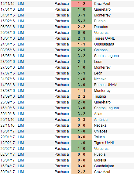 それはホーム無敗記録。パチューカはリーグ戦において、2015年11月以降一度たりともホームでは負けていないのだ(カップ戦では昨年2月に敗戦)。『Soccerway』で見てもこの通り。