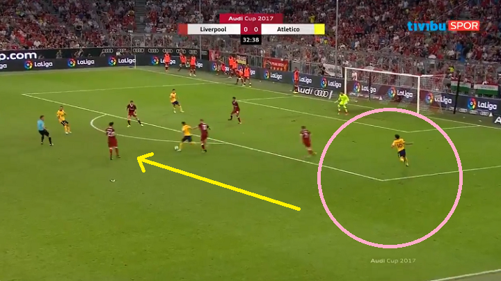 リヴァプールの左サイドを守っていたラグナル・クラヴァンは中へと引っ張られ、カバーに入ったジェームズ・ミルナーも中を意識する形に。リヴァプールの左サイドには、ぽっかりとしたスペースができてしまった。