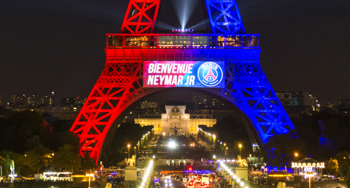 『Le Parisien』などによれば、現地土曜日の午後9時から日曜日の午前1時まで、ネイマール歓迎のためにPSGカラーにイルミネートされたそう。
