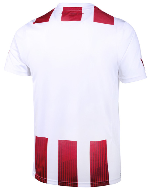 新しいホームキットは1970年代のユニフォームをモチーフにしている。レッド/ホワイトの一見クラシカルなストライプだが、下部には細めのストライプを重ねるモダンなデザインとなっている。