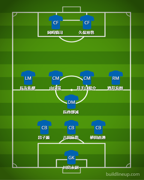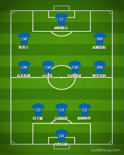 相手に合わせ3バックのミラーゲーム気味に。フォメは3-1-4-2。