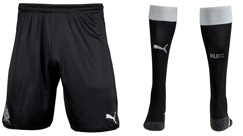 パンツはブラックのみで、ソックスはブラックを基調にグレーの差し色という組合せ。前面にはPumaキャット、背面にはチーム名の略称「NUFC」のグラフィックが入る。