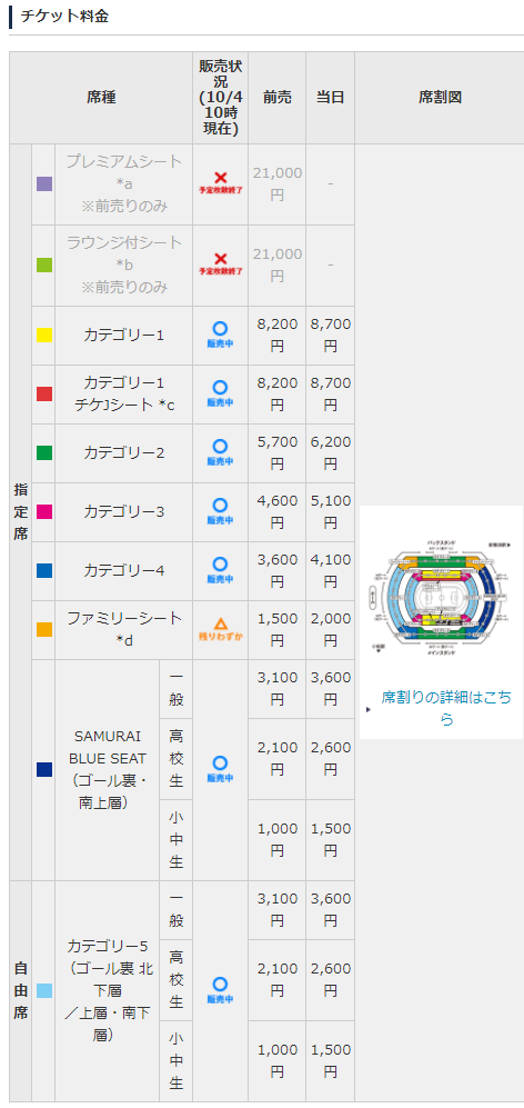 また、日本で最多の7万2000人のキャパシティを誇る日産スタジアムでの開催ということも、販売状況に影響していると見て間違いない。