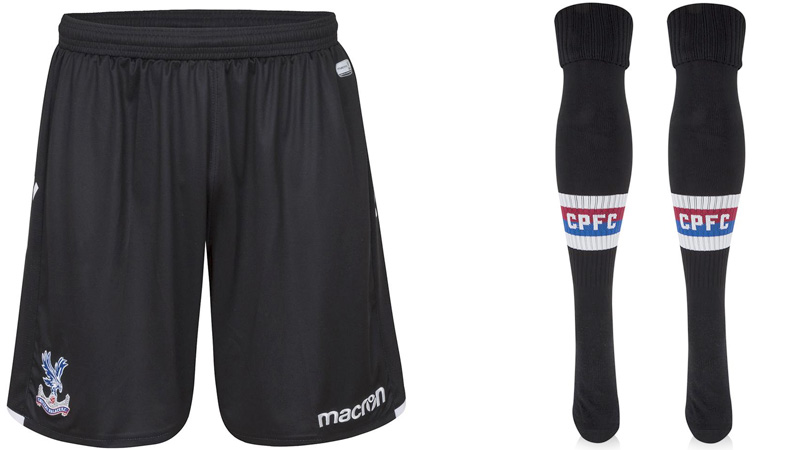 アウェイキットは2013-14シーズン以来となるブラック。胸にレッド/ブルーのボーダーを入れてチームカラーを残した。背面の首元にはチーム名“CRYSTAL PALACE F.C.”が入る。