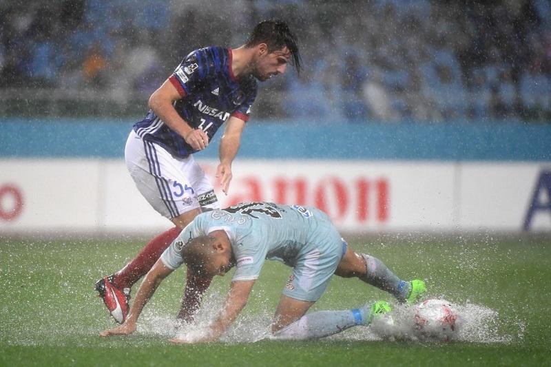 各地で悪天候の中Jリーグの試合が行われたのだが、ジュビロ磐田対横浜F・マリノス戦が行われた静岡スタジアム・エコパのピッチ状態は特に酷いものだった。
